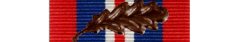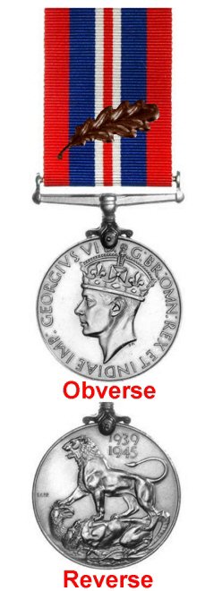 In 1943 King George VI authorised the wearing of a single leafed oak emblem for those mentioned in despatches during the Second World War. Originally worn on the jacket where medals would be worn, it was, after the issue of The War Medal 1939-45, authorised to be worn on the ribbon of that medal.