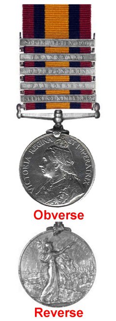 Awarded for service during the Boer War between 11th October 1898, and 31st May 1902, this silver medal was usually accompanied by clasps denoting the particular action or theatre of war in which the recipient took part.