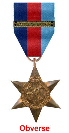 Obverse: A six pointed star, in the centre of which is the Royal Cypher surmounted by a crown superimposed on a circlet that bears the words "THE 1939-1945 STAR".