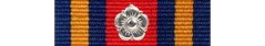 Ribbon: 32mm wide. The ribbon is dark blue with a wide 10mm red stripe down the centre. The blue edges thus formed have a 4mm central orange stripe. The red symbolises the British Commonwealth Forces and the orange the sun.