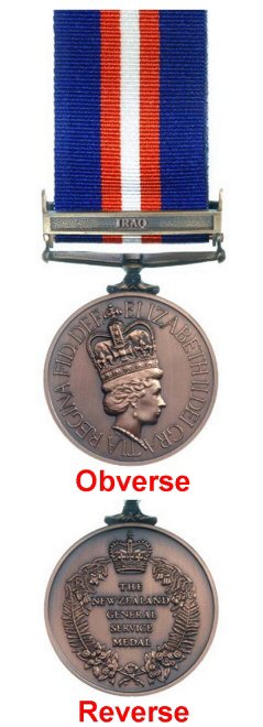 The medal is awarded with a clasp to describe where an individual served. It is worn as a war medal, in order of date of qualification. The New Zealand General Service Medal 1992 has also been issued in silver for warlike operations.