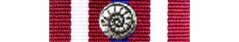Ribbon: 32mm in width, with seven narrow vertical stripes of crimson, white, crimson, purple, crimson, white, and crimson.
