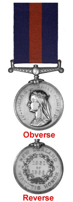 This medal was awarded for service in New Zealand during the wars of 1845-47 and 1861-66. It was issued to members of the Royal Navy, Royal Marines and Army who fought in New Zealand, and to members of various New Zealand units who were under fire.