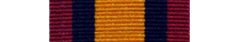 Ribbon: 32mm wide. Orange with a 5mm red stripe on each edge and two dark 5mm blue stripes inside these.
