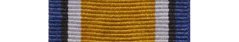 Ribbon: 32mm wide. A 17mm orange watered stripe down the centre, bordered with 3mm white, 1mm black and 3mm blue stripes.