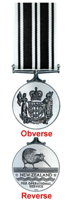 Instituted on 23rd July 2002, The New Zealand Operational Service Medal, made of silver plated base-metal and circular in shape, is awarded for operational service on or after 3 September 1945. In order of precedence, it is worn as a war medal immediately after The New Zealand War Service Medal and before any other war medals issued for service from 3 September 1945.