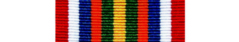 Ribbon: 32 mm in width, the ribbon is composed of 11 vertical stripes: red, white, blue, orange, green, yellow, green, orange, blue, white, and red. The six colours used in the ribbon are the principal colours of the national flags of those countries affected by the earthquake and resulting tsunami of 26 December 2004.