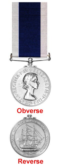 Reverse: A representation of HMS Victory inside a circle of rope. Inscribed around the outside is the legend "FOR LONG SERVICE AND GOOD CONDUCT".