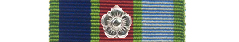 The medal ribbon reflects the colours of the Navy, Army and Air Force as dark blue, red and light blue respectively. Light green stripes have been added between these colour stripes to reflect the volunteer and territorial elements of the Services. When the ribbon is worn alone, a small silver rosette may be worn on the ribbon to represent each additional Clasp.