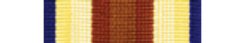 Ribbon: 35mm wide, the ribbon for this medal has a 14mm wide watered brown centre stripe and 2mm blue outer stripes. On each side of the brown centre stripe is an 8mm watered line which changes from white to yellow as it moves towards the outer edges. Sixty days of service in the Mission was necessary to qualify for award of the medal.