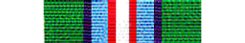 Ribbon: 35mm wide, the ribbon for this medal has 8mm green edges, inside of which are 1mm dark blue stripes, 4mm light blue stripes and 1mm red stripes. The centre of the ribbon is white. Ninety days of service in the Mission was necessary to qualify for award of the medal.